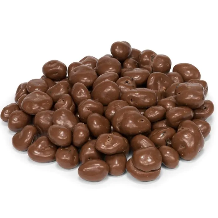 Ingredienser Mælkechokolade (sukker, kakaosmør, sødmælkspulver, kakaomasse, vallepulver, lactose, emulgator (soja lecithin E322), naturlig vanille aroma), jumbo rosiner, polish (E414)